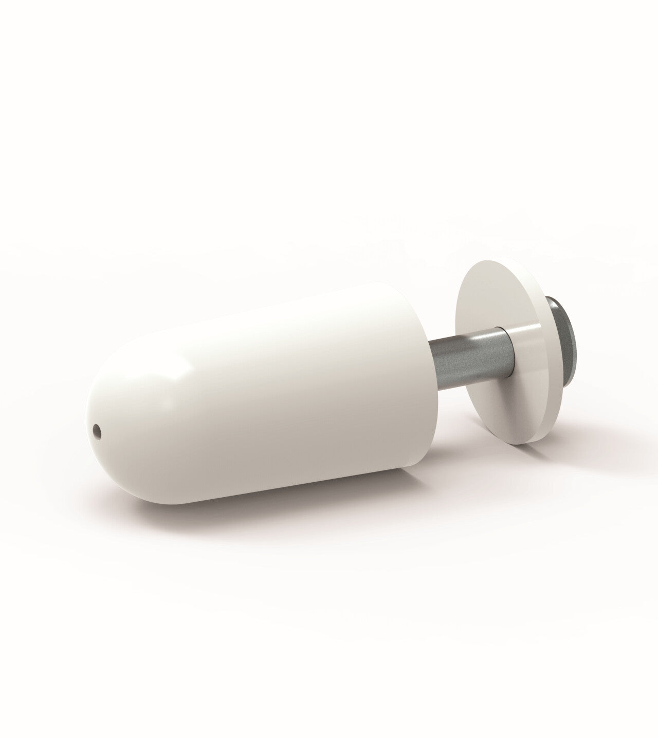 Anschlagstopfen mit geschlossenem rundem Kopf aus Hart-PVC Kunststoff mit M6 Gewindeschraube, Länge 40 mm, rund. Anschlagstopper werden an der Endleiste des Rollladenpanzers befestigt um zu verhindern, dass dieser in den Rolladenkasten gezogen wird. Bis 70 cm Rollladenbreite ist 1 Anschlagstopfen zulässig, darüber müssen 2 montiert werden.