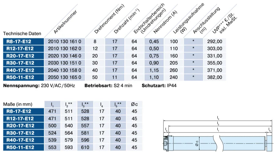 Becker R-E12 Universalmotor – leistungsstarker Sonnenschutzantrieb mit elektronischer Endabschaltung