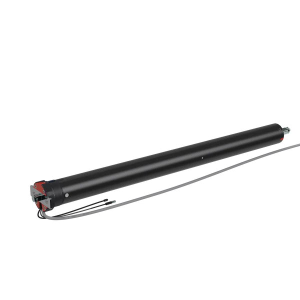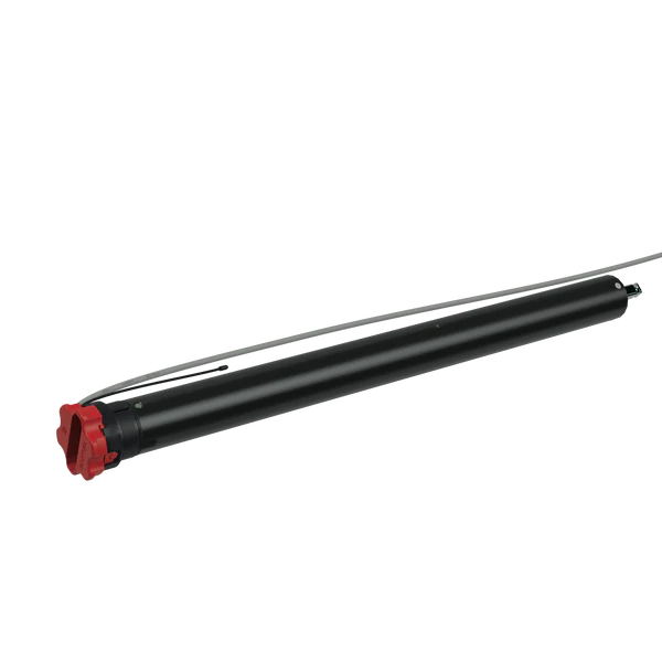 Elektrischer Rohrantrieb mit integriertem bidirektionalen Funkempfänger für Rollläden, Markisen und ähnliche Anwendungen, mit beidseitig einstellbarer elektromechanischer Endabschaltung.