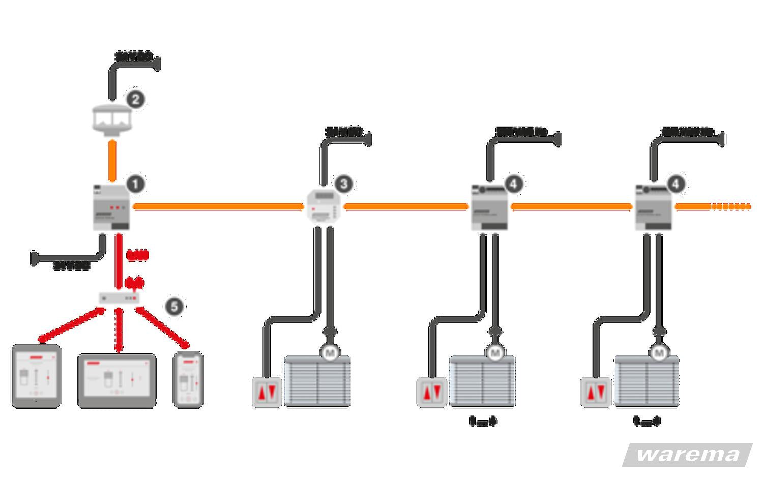 Individuell: Automatische Steuerung auf Basis angeschlossener Sensoren – bis zu 500 Sonnenschutzprodukte können einzeln mit jeweils spezifisch parametrierten Funktionen betrieben werden.
