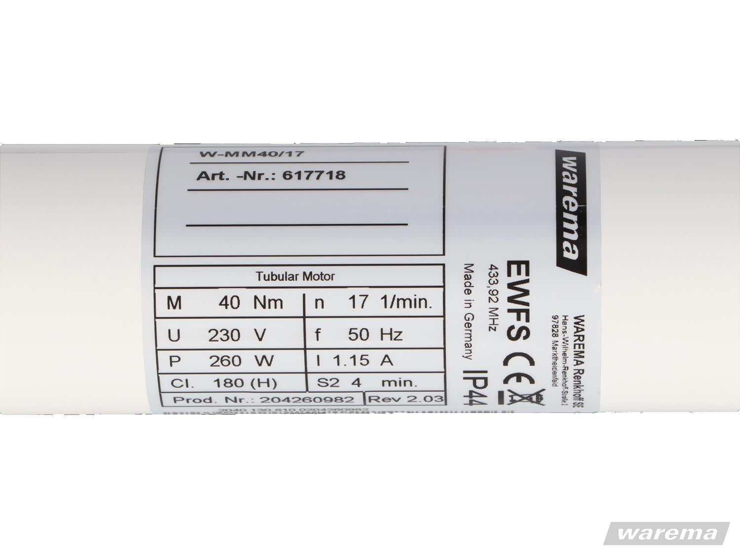 WAREMA Rohrmotor W-MM40/17 für WAREMA Markisen