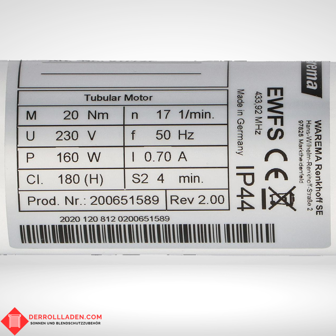 WAREMA W-RT20/17 Rohrmotor – Kraftvoller EWFS Funk-Rollladenantrieb
